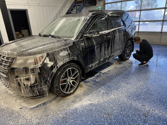 - Pre-soak foam spray over the entire exterior of the vehicle.